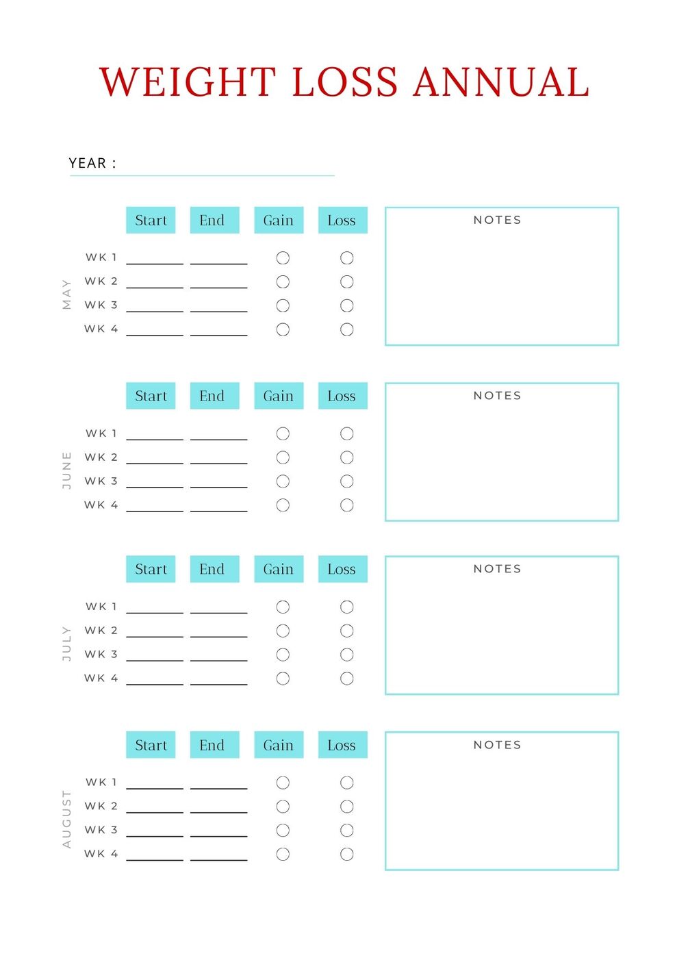 Weekly Weigh In Page to keep you accountable